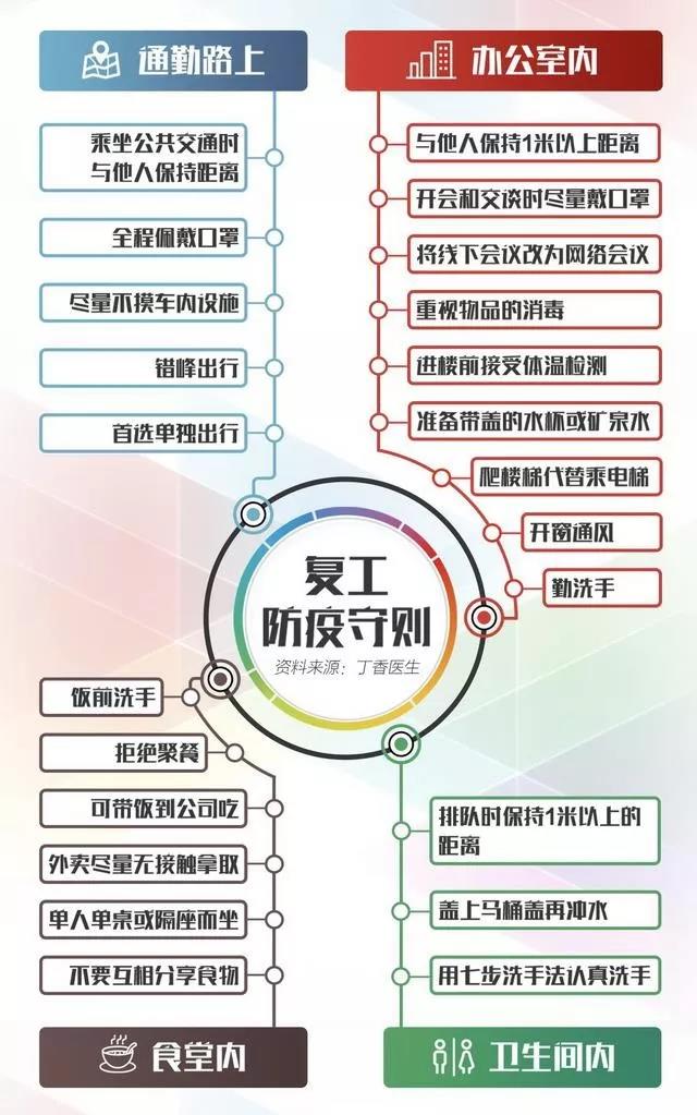 本周開始大批企業(yè)陸續(xù)復工、商場開門、市場開市,回歸日常工作生活節(jié)奏。復工之后,企業(yè)和員工應如何防控疫情?辦公室如何消毒,收好下面的復工守則關鍵信息一目了然↓↓↓