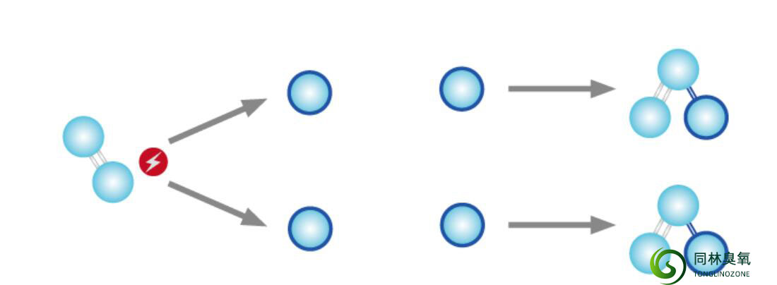 能量( 紫外光或閃電) 將氧分子 ( 氧氣)分解成單個氧原子 氧原子與其他氧分子 ( 氧氣) 形成弱鍵結(jié)合成為臭氧