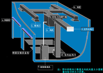 由風(fēng)機(jī)、風(fēng)管等組成,臭氣收集由內(nèi)循環(huán)機(jī)組完成,風(fēng)機(jī)的風(fēng)量可根據(jù)臭味濃度自動(dòng)調(diào)節(jié),中轉(zhuǎn)站內(nèi)的空氣可按設(shè)計(jì)要求有導(dǎo)向、統(tǒng)一的收集、處理確保中轉(zhuǎn)站內(nèi)處理無(wú)死角,排放風(fēng)機(jī)則根據(jù)空氣質(zhì)量自動(dòng)開啟和關(guān)閉,只有空氣質(zhì)量達(dá)到排放標(biāo)準(zhǔn),排風(fēng)機(jī)才會(huì)自動(dòng)啟動(dòng),將處理后的空氣排出室外。