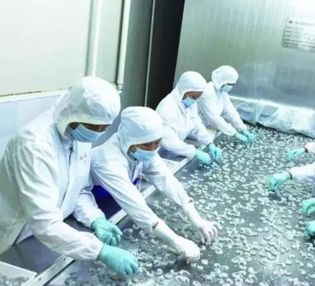 采用上述加工工藝,存在衛(wèi)生方面的隱患:1.蝦仁的冷卻降溫在加氯的常溫水池和冷卻水池中進(jìn)行,氯雖然可以起到殺菌作用,但也會(huì)造成新的藥物殘留問題(氯對(duì)人體有害)。2.操作工人長(zhǎng)時(shí)間接觸含氯的水,工人的皮膚會(huì)發(fā)癢、潰爛。3.在“再漂洗去黃”工序中,如果水質(zhì)不好,會(huì)造成二次污染。