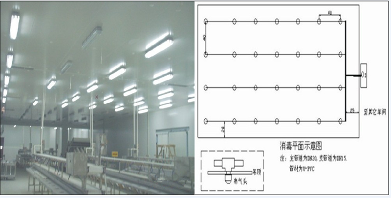 在主管道或密閉容器上開連接口,配置閥門及活結,通過管路將高濃度臭氧氣體輸入需滅菌容器或管道內(nèi),達到消毒滅菌效果。