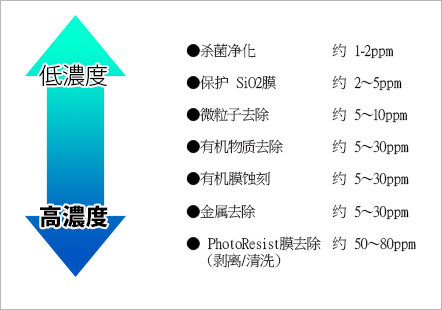 使用臭氧水可去除的物質(zhì)以及所需臭氧的濃度