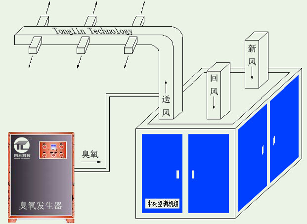 該系列臭氧發(fā)生器高濃度臭氧發(fā)生技術(shù),放置于中央空調(diào)外,通過管道把臭氧加入中央空調(diào)送風(fēng)系統(tǒng),而使臭氧均勻的擴(kuò)散到需要消毒的房間。